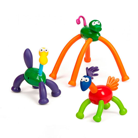 Este conjunto de 31 piezas variadas permitirá a los jóvenes construir sus propios animales divertidos y caprichosos con una amplia variedad de cuerpos, cabezas, patas, colas y crestas.